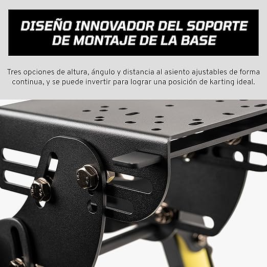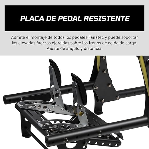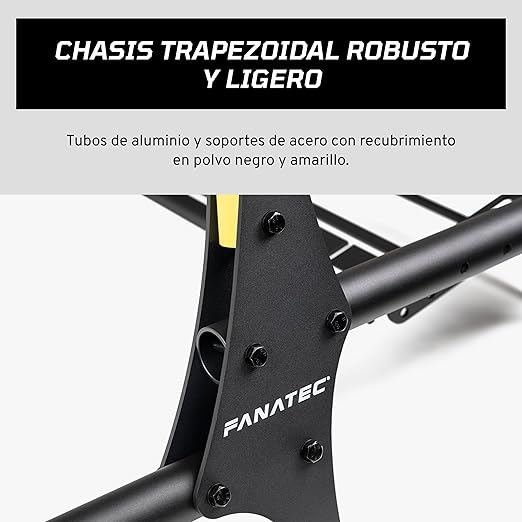 El Fanatec CSL Cockpit V1.5 es un chasis robusto y ligero diseñado para ofrecer estabilidad profesional en configuraciones de sim racing estilo GT. Su estructura trapezoidal combina tubos de aluminio con soportes de acero con recubrimiento en polvo negro y amarillo, garantizando rigidez y durabilidad.